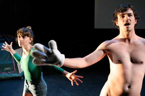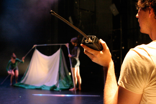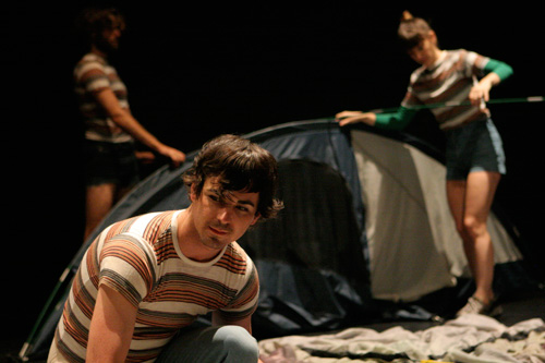 In Sonya and Layla Go Camping, an evening-length work incorporating live performance and video, robbinschilds uses prosaic repetition as a springboard into a playful exploration of craft in relation to choreography and (Intelligent) design. Inspired in part by Jacques Rivetteās 1974 film Celine and Julie Go Boating, the piece also investigates the multifaceted nature of collaborative creation and allows for a fluid interplay between viewing and performing. The work as a whole follows a triptych structure, and is comprised of a string of MacGuffins, a sequence of seemingly arbitrary events, which eventually accumulates to unveil its own absurdist logic.