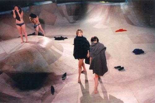 This evening length work delves deep into the world of heartache, rejection, and insufferable discomfort to ponder the question how the hell can we ever get out of this? Set way down in the depths of the Autumn Skate Bowl, an indoor wooden pit built inside a historic factory in Greenpoint, Brooklyn, the quintet depicts an arresting portrait of all dark matters of the heart. Jealously, infidelity, anger, hate, martyrdom, cruelty, repulsion; you name it, a sure fire recipe for extreme self-loathing and destruction. robbinschilds' site-reactive piece uses the sunken bowl as an architectural metaphor for sadness. Combining the choreographers inventive, quirky movement style with a healthy dose of irreverent humor, Seriously Heavy leads the audience through manic highs and lows, the peaks and valleys of the general topography of love.